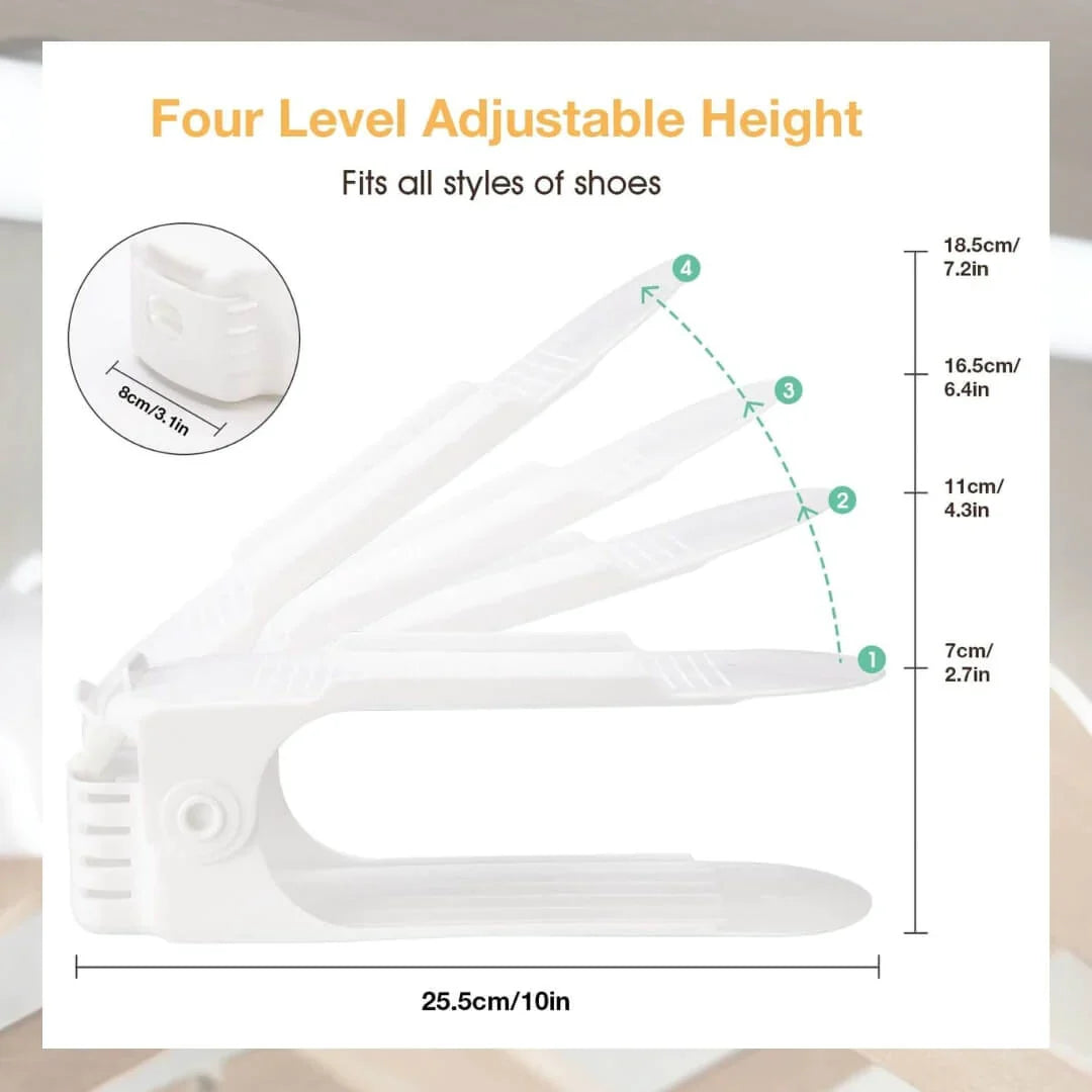 ה-Shoeslot מגיע עם עיצוב מתכוונן כדי להתאים לכל גדלי הנעליים. בין אם מדובר בנעלי ספורט, מגפיים או נעליים שטוחות, אתה יכול להתאים אותו לאחסון מושלם בכל פעם.